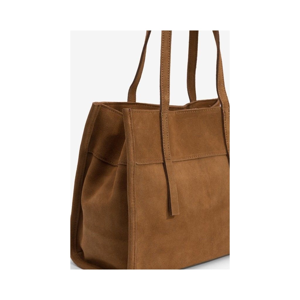 Bolso shopper de ante con cierre magnético superior, asas fijas de hombro y bolsillo interior. Tamaño mediano.