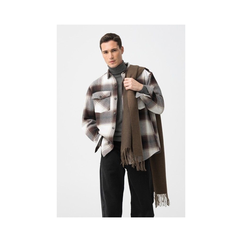 Sobrecamisa oversized de franela de algodón a cuadros, dos bolsillos con solapa en la parte delantera y cierre de botón metálico. Cuello camisero, manga larga con botones en los puños.
