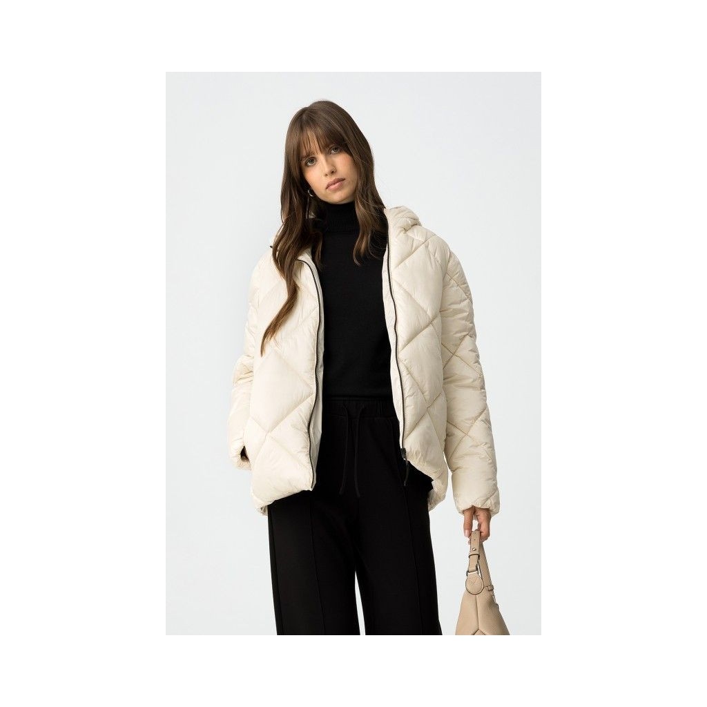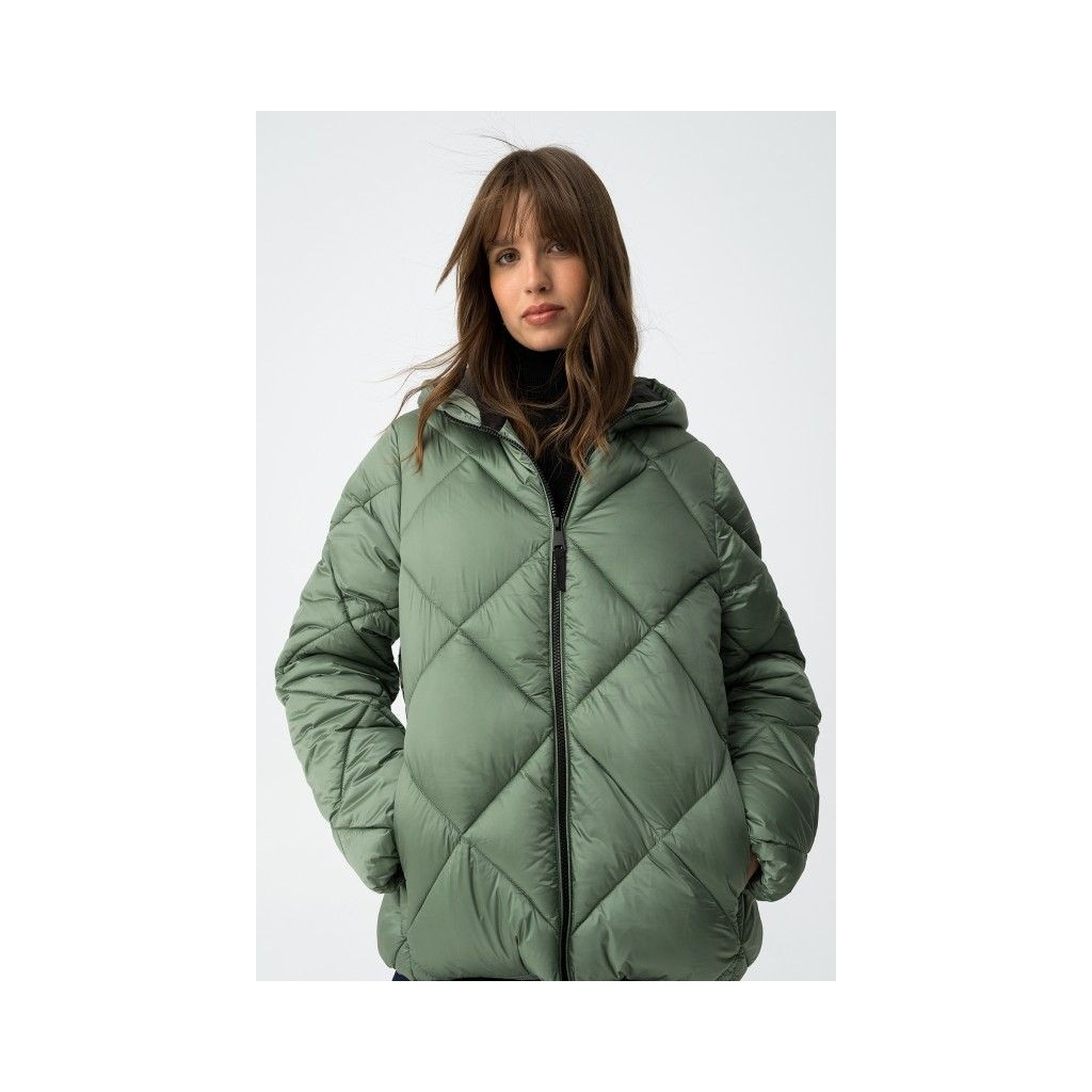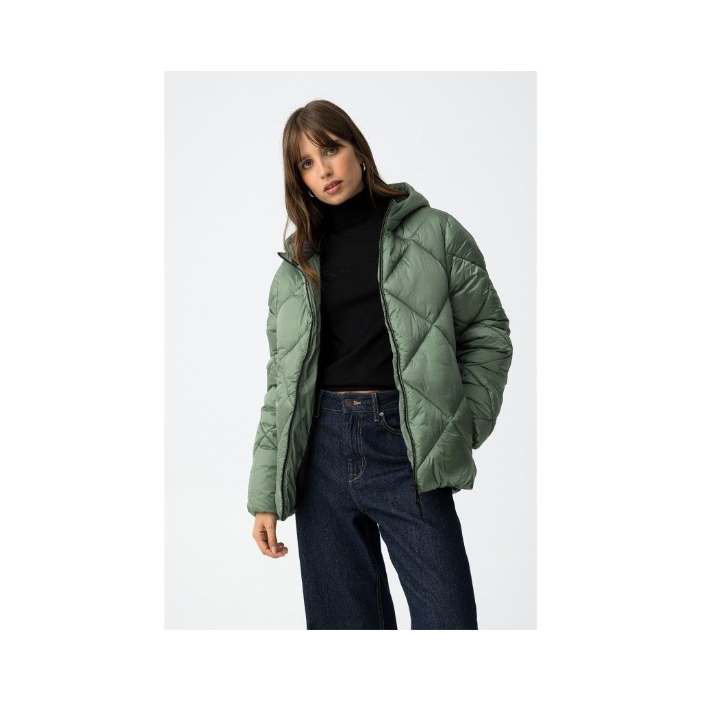 Cazadora acolchada relaxed fit, con dos bolsillos frontales y cierre de cremallera. Capucha y manga larga con elástico en los puños.