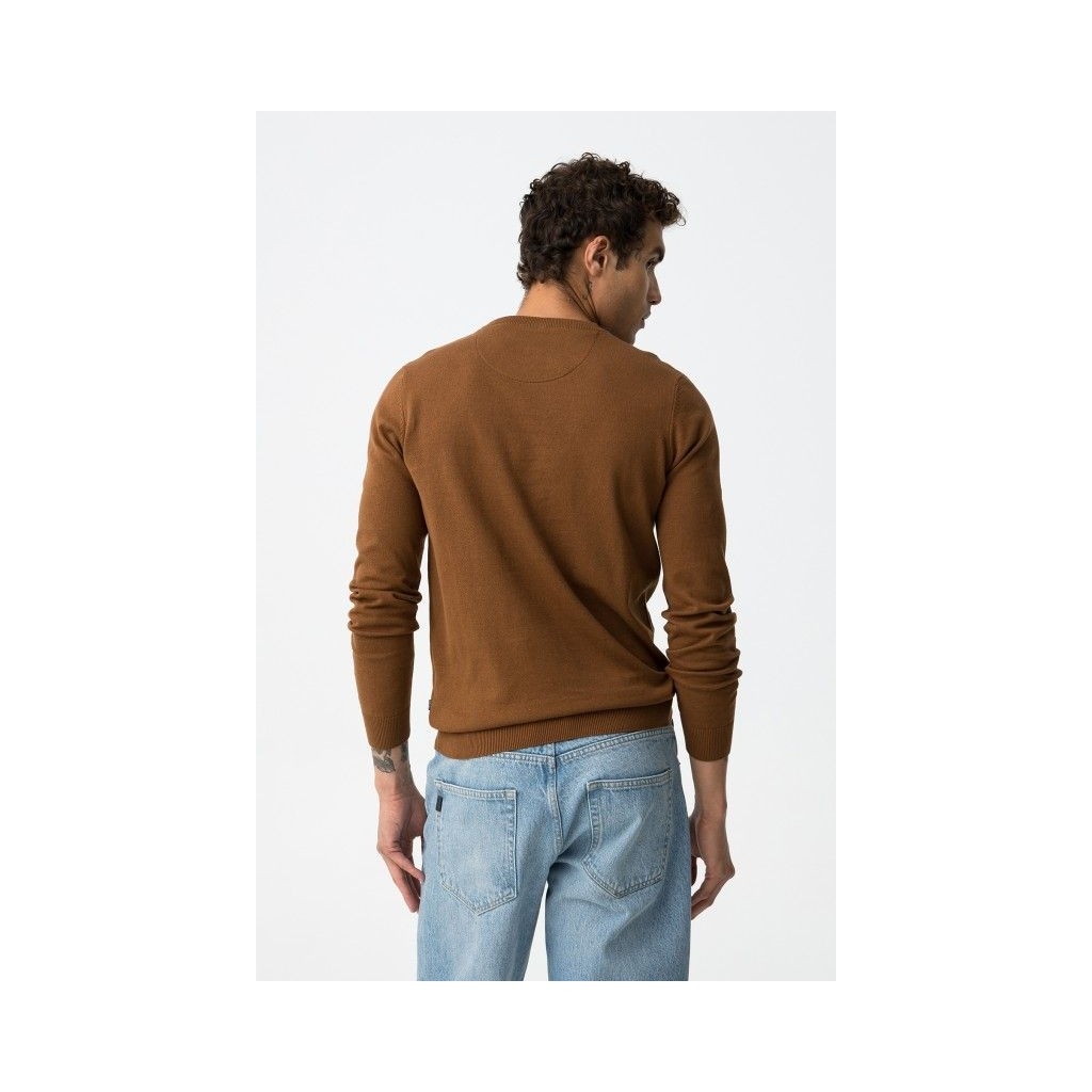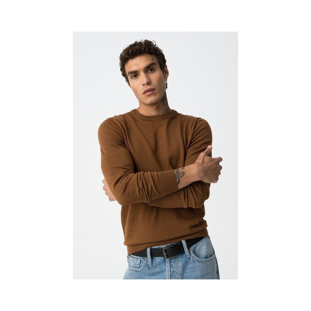 Jersey de punto fino de manga larga y cuello redondo.
