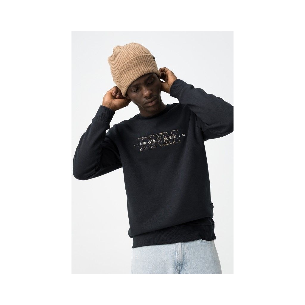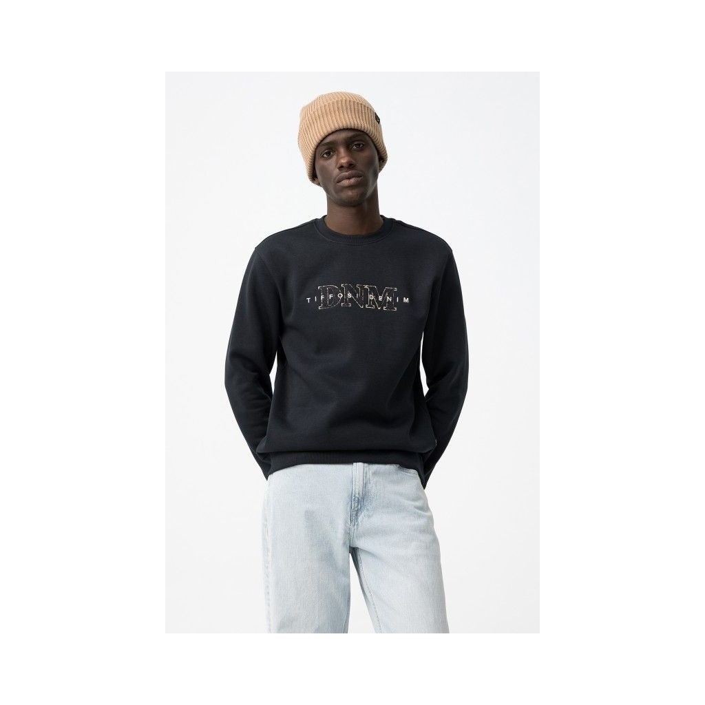 Sudadera con cuello redondo. Bajo y puños en rib. Bordado frontal con letras.