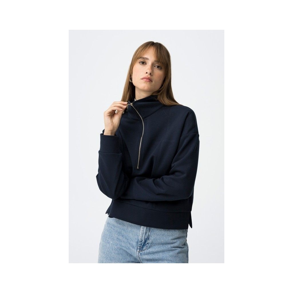 Sudadera relaxed fit con cuello alto, cremallera y manga larga.