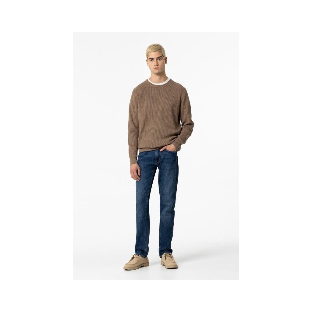 Jeans comfort fit con cinco bolsillos. Cierre frontal con cremallera y botón metálico.