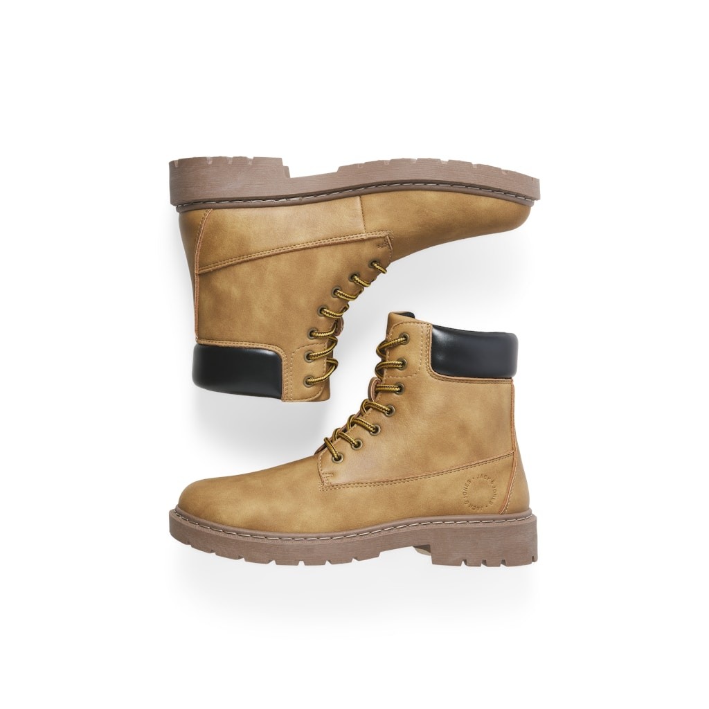El poliuretano es un material sintético duradero.Tipo de producto: Botas.Cierre: Cordones.Forro: Forro de poliéster para una mayor comodidad.Suela: Suela de goma.Puntera: Punta redonda.Estilo de vida: Tradicional.