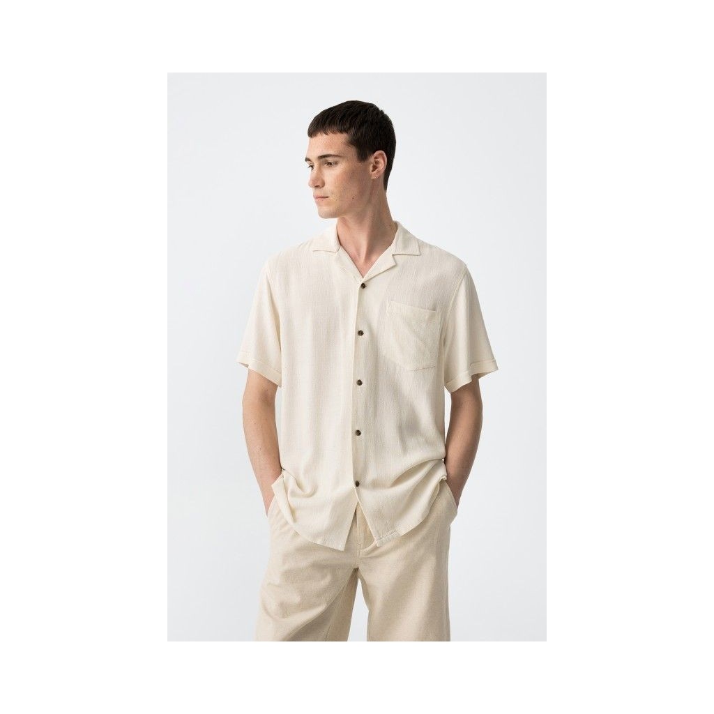 Camisa estampada con cuello solapa y manga corta con acabado doblado. Cierre frontal con botones.
