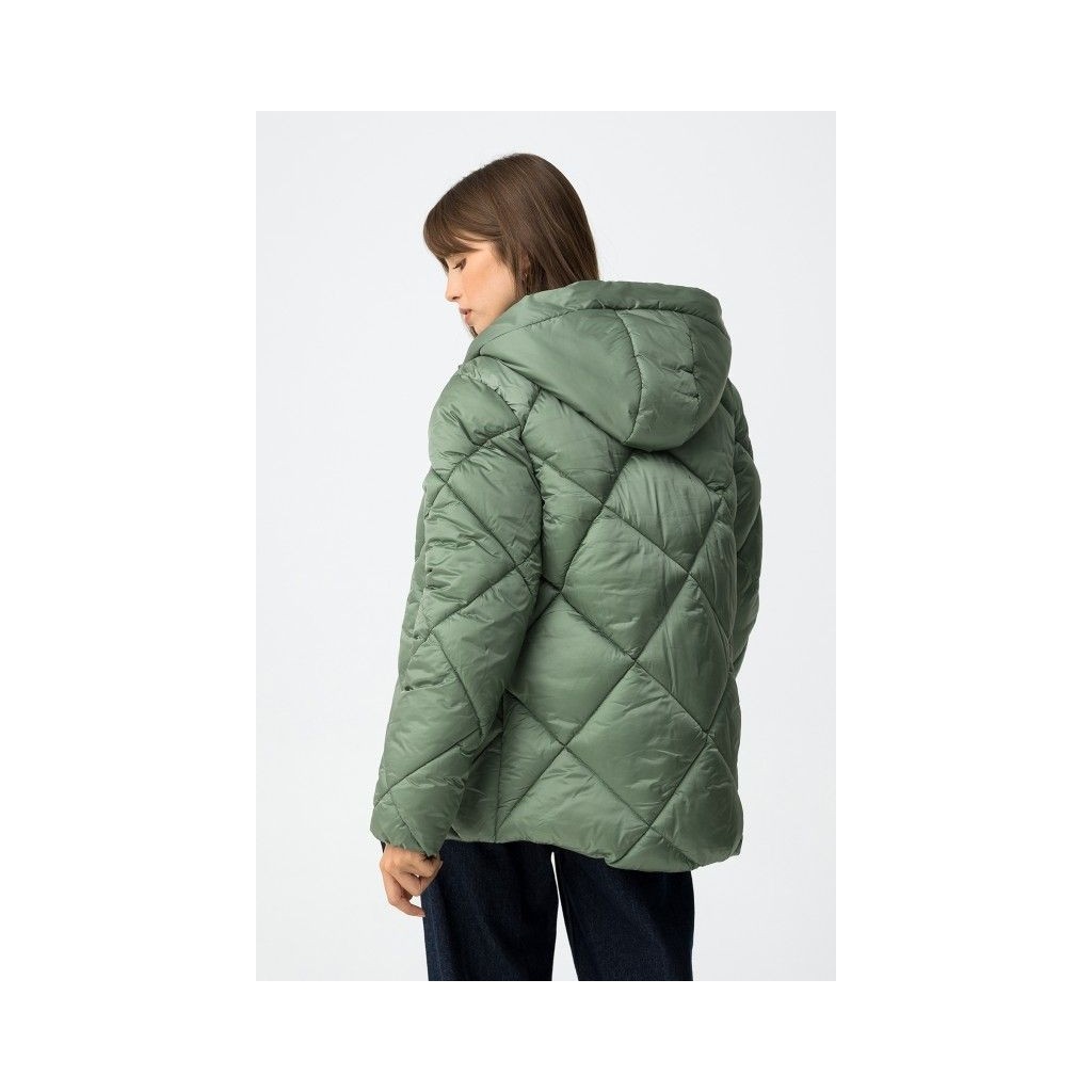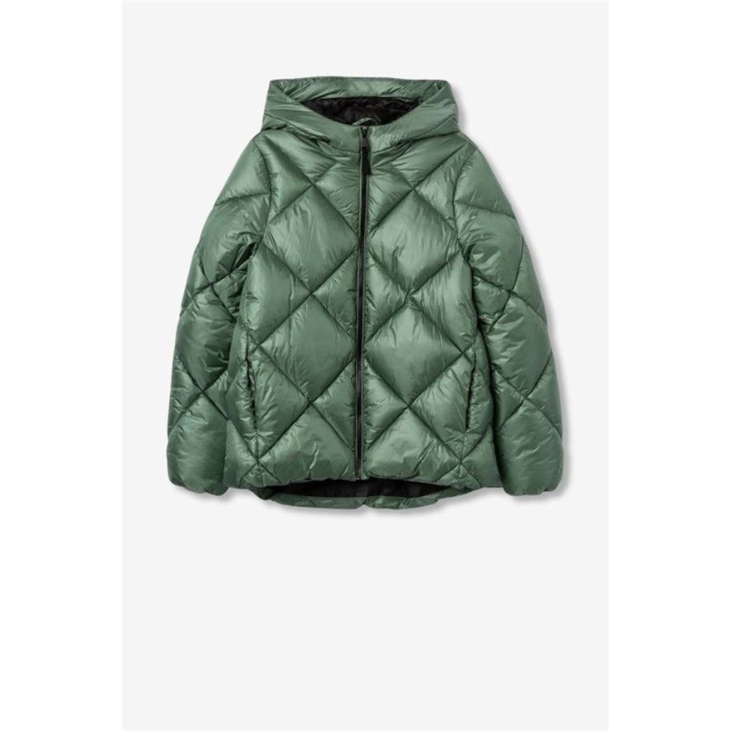 Cazadora acolchada relaxed fit, con dos bolsillos frontales y cierre de cremallera. Capucha y manga larga con elástico en los puños.