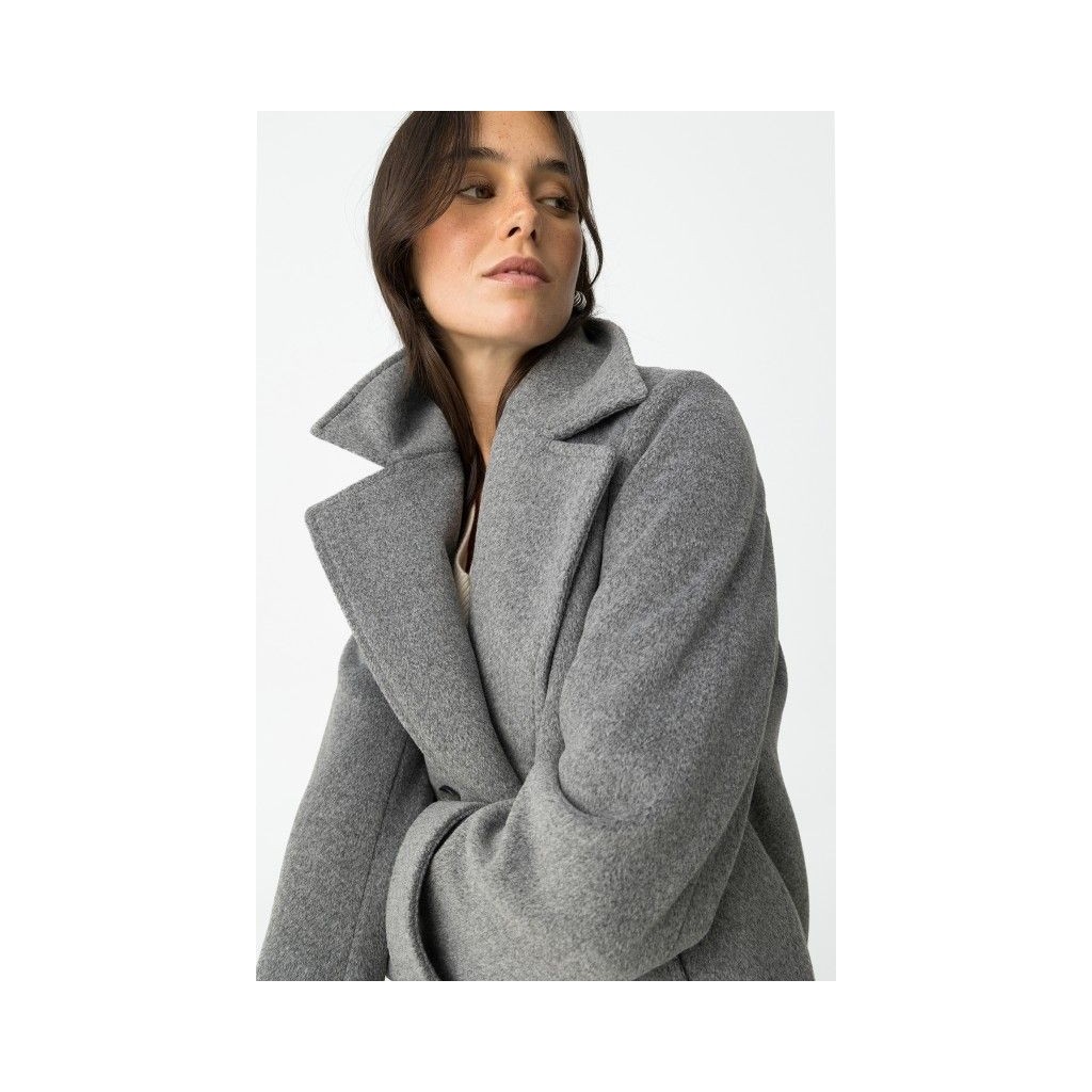 Chaqueta regular fit con doble botonadura. Solapa ancha y dos bolsillos laterales. Puños con tira decorativa y botón.
