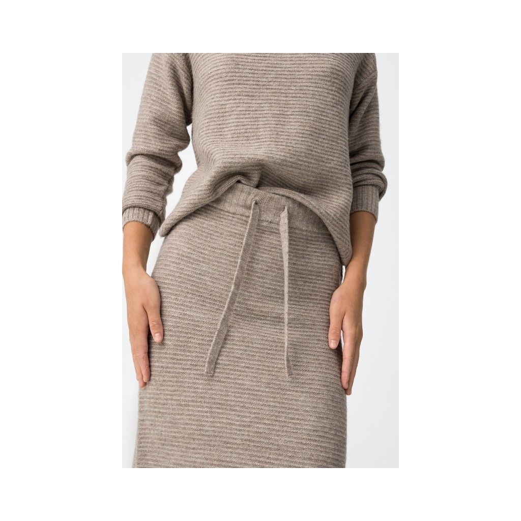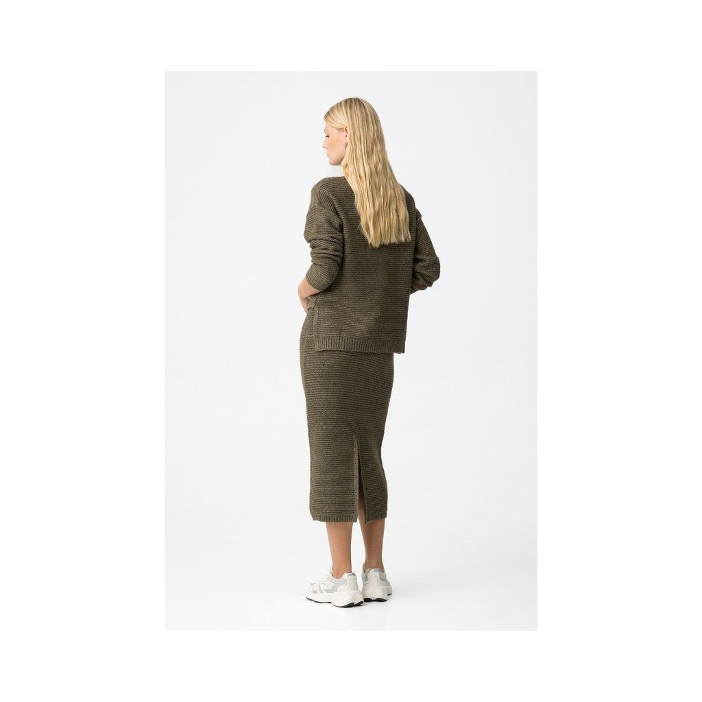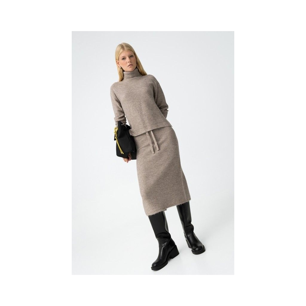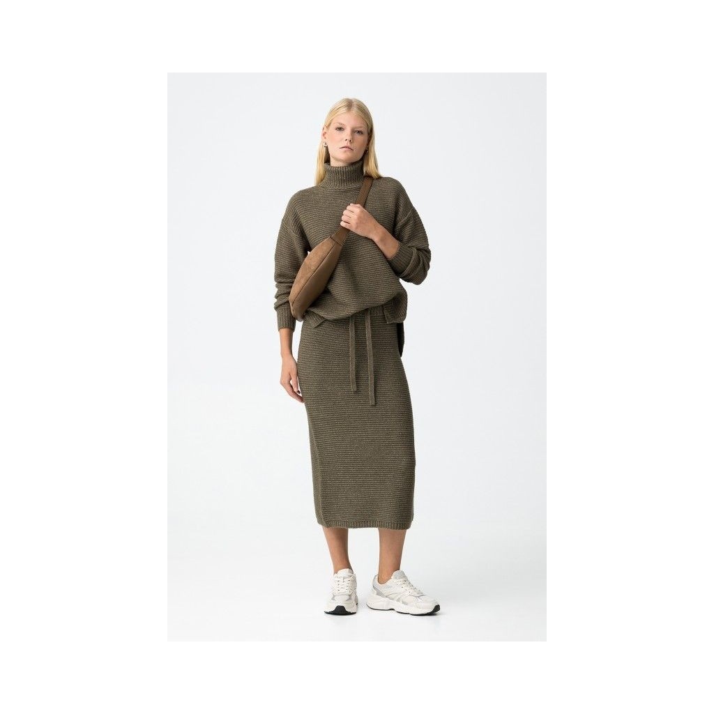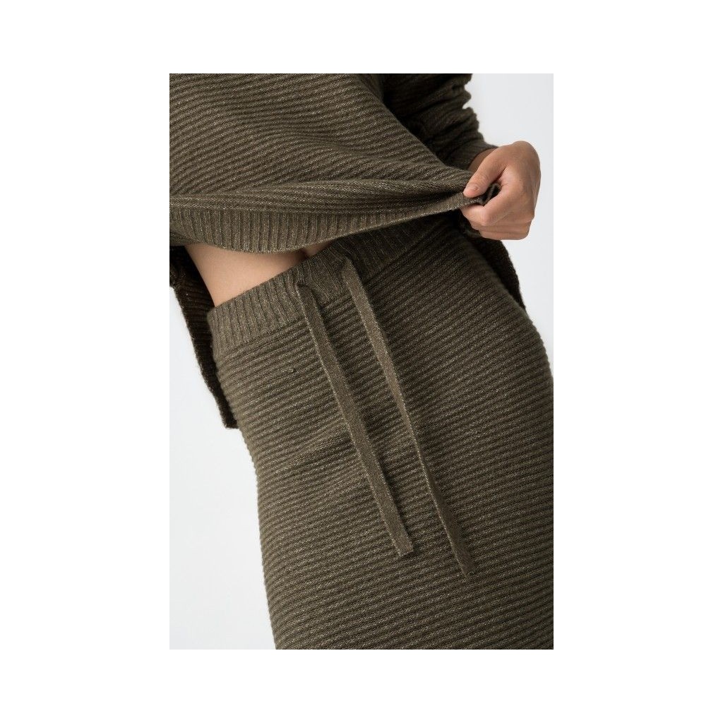 Falda midi regular fit de punto canalé, con abertura en el bajo y cintura elástica con cordón ajustable.