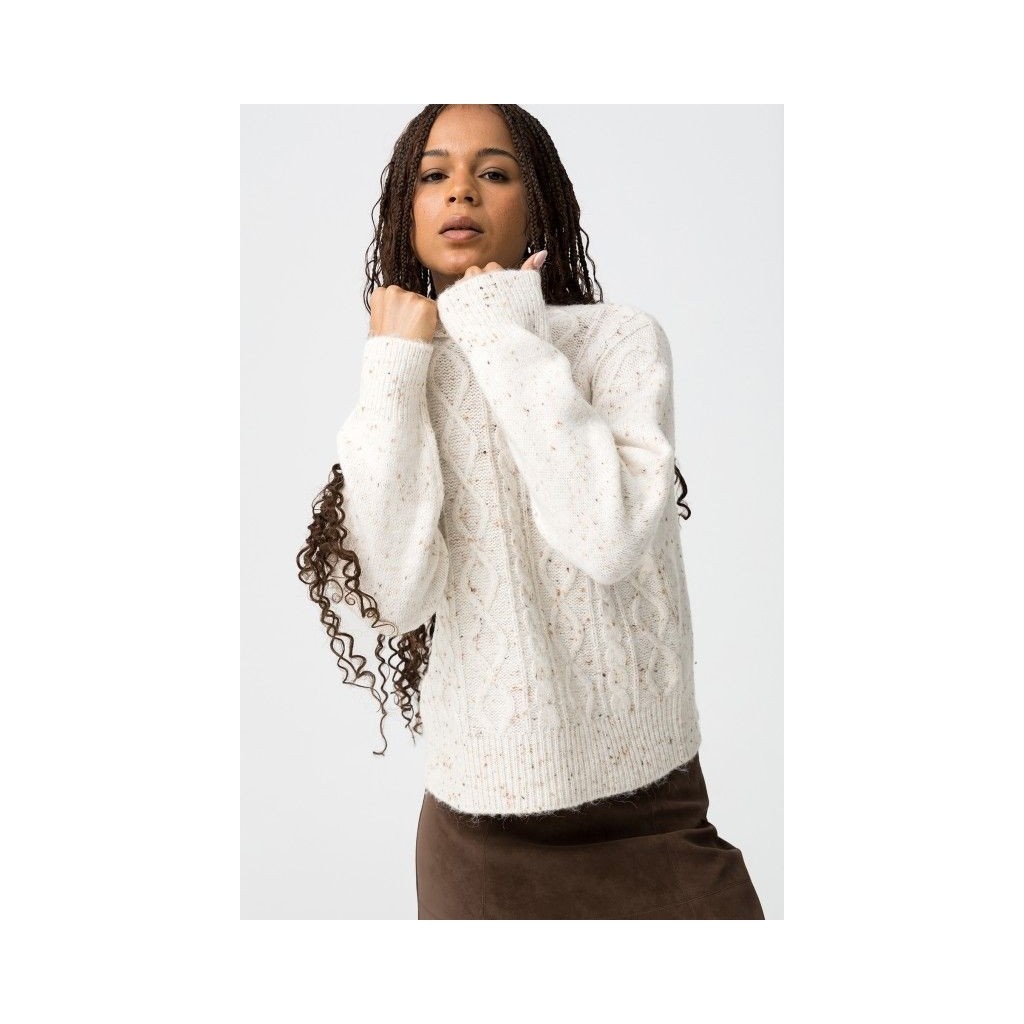 Jersey regular fit de punto trenzado, cuello alto, manga larga y acabados de canalé.