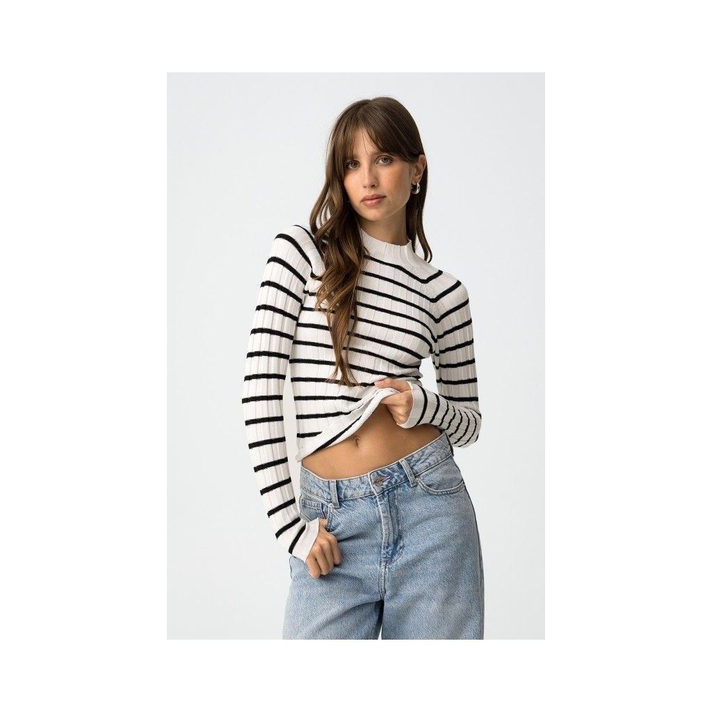 Jersey slim fit de punto canalé a rayas, con cuello redondo y manga larga.