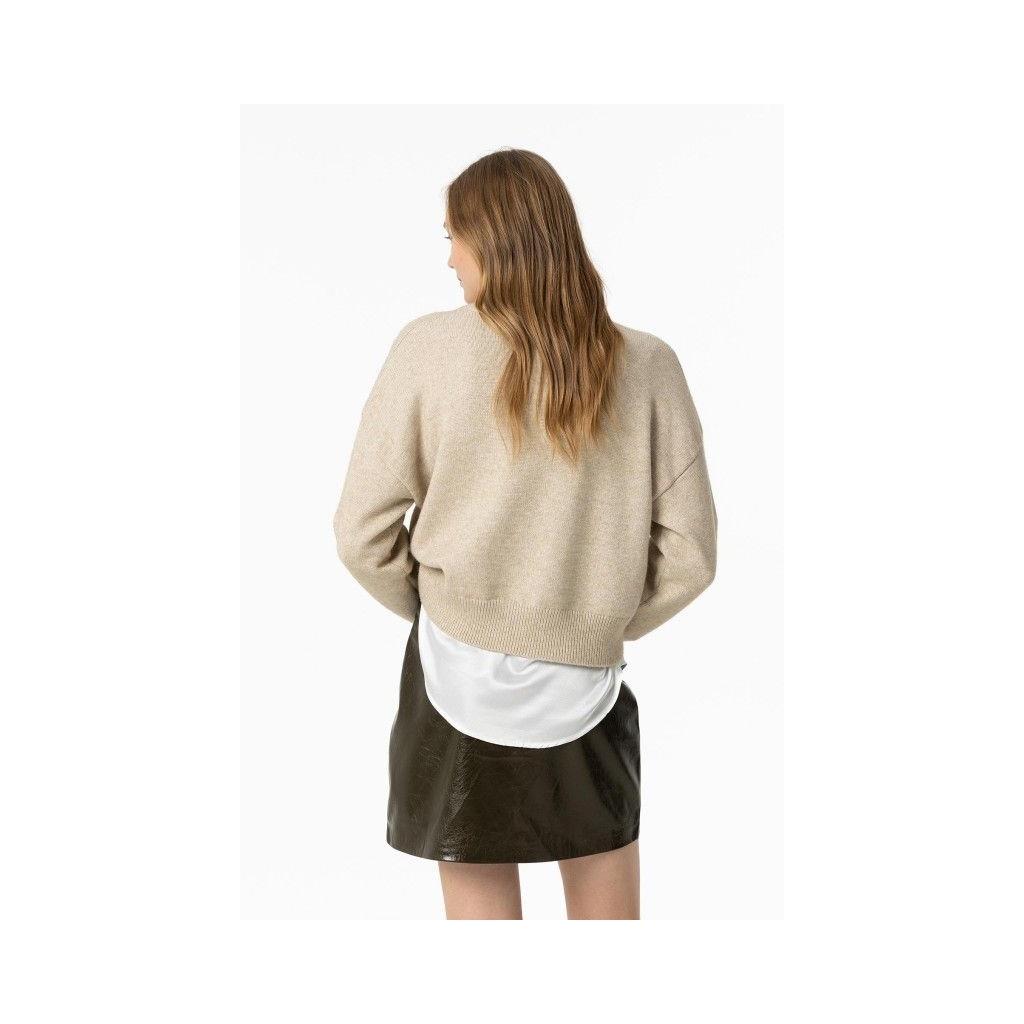 Jersey de punto de cuello alto y manga larga. Detalle de costura exterior.