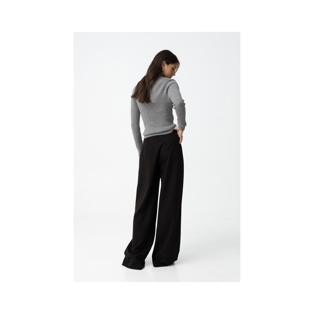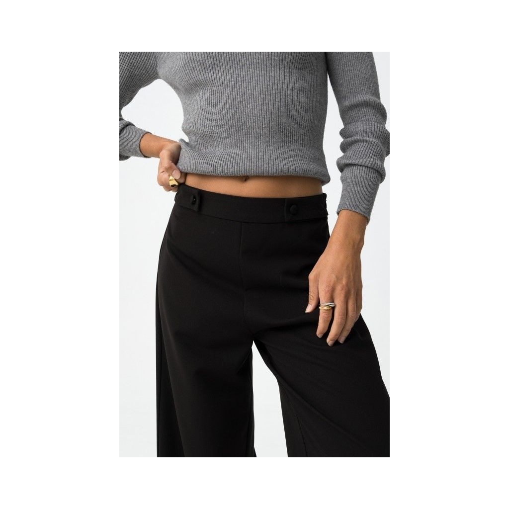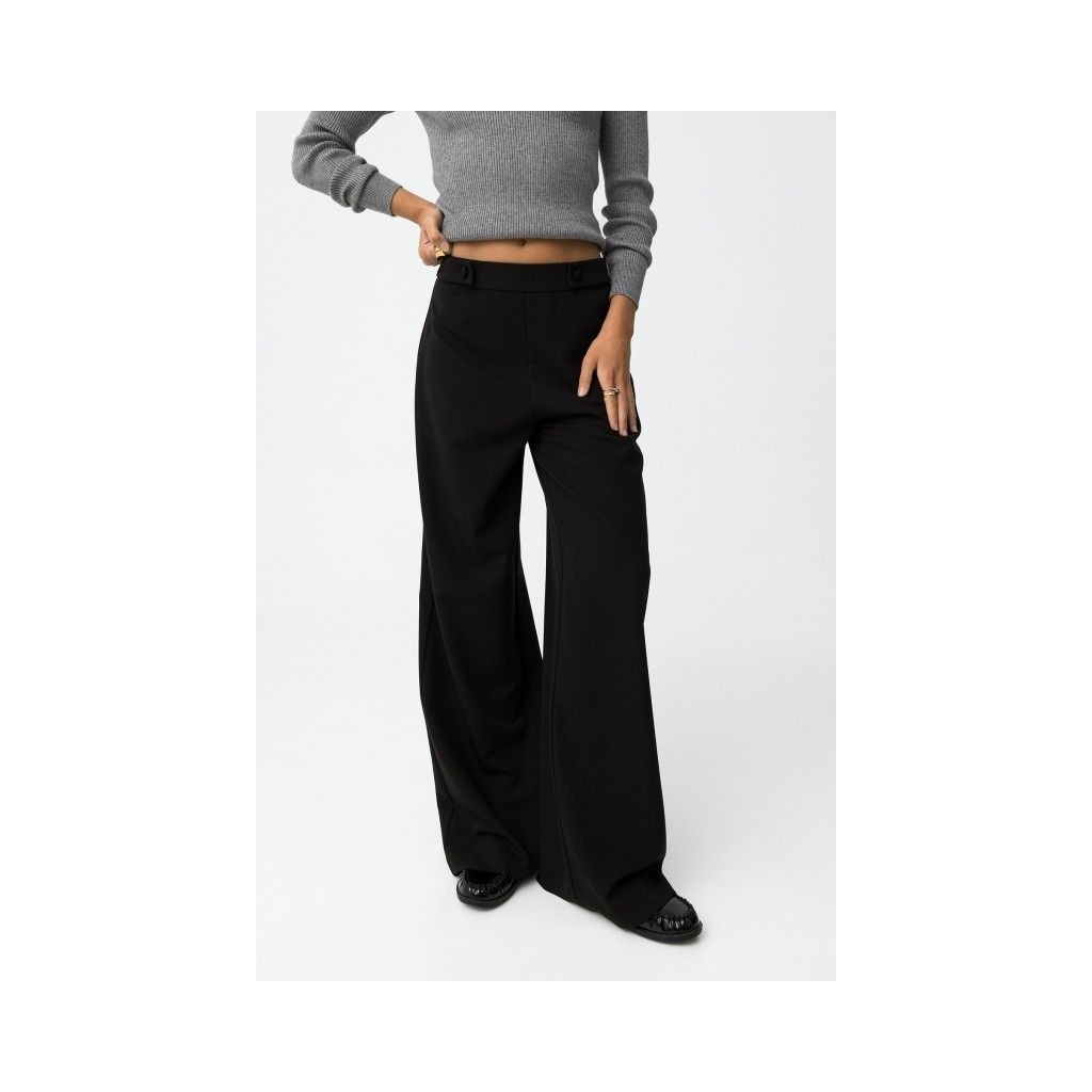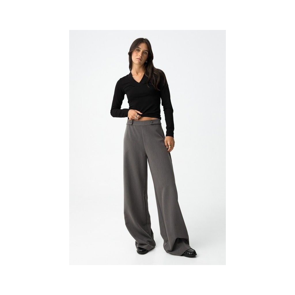 Pantalón wide leg con trabillas decorativas y cierre lateral con cremallera.