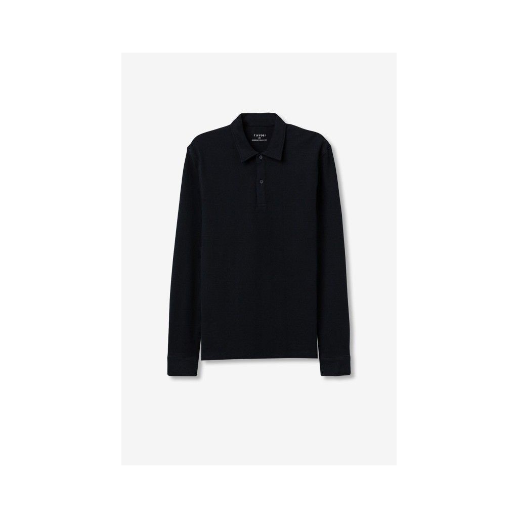 Polo de manga larga. Cuello clásico con dos botones. Puños con cierre de botón.