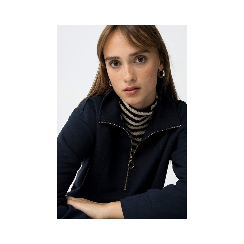 Sudadera relaxed fit con cuello alto, cremallera y manga larga.