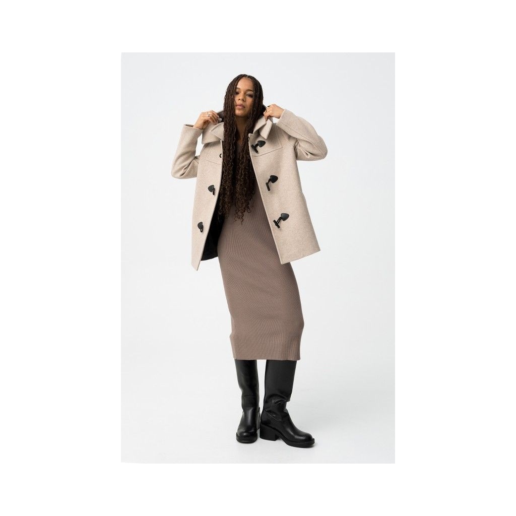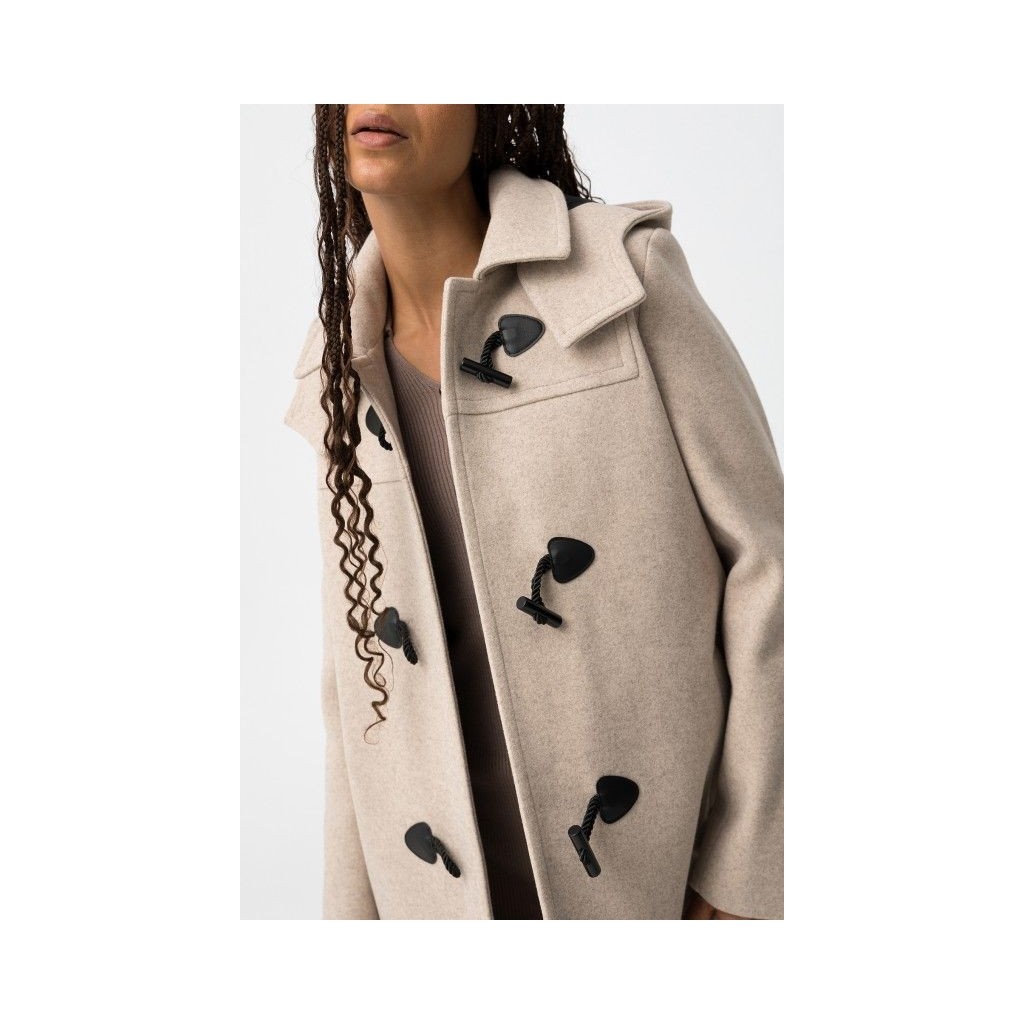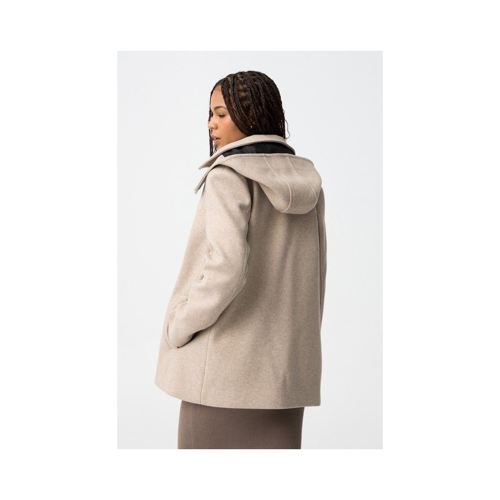Abrigo regular fit con dos bolsillos, cierre alternado en la parte delantera y capucha desmontable. Cuello camisero y manga larga.