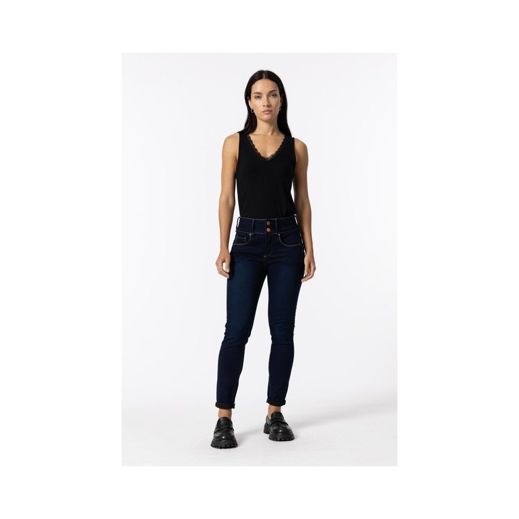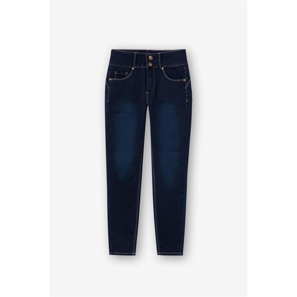 Jeans ajustados de tiro alto con cinco bolsillos. Cierre frontal con cremallera y botones metálicos.